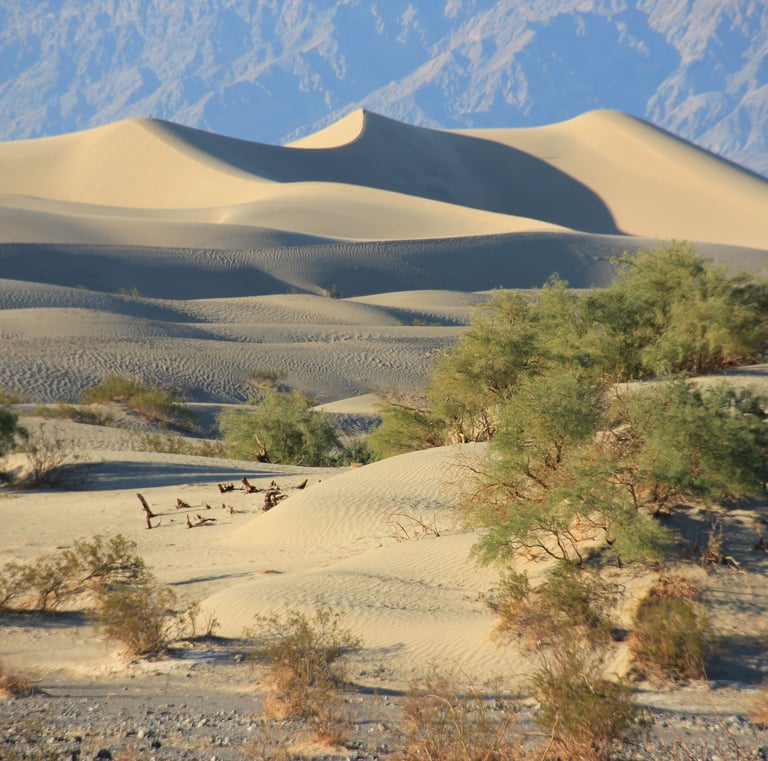Death Valley (Vallée de la Mort) : Plongez dans les paysages désertiques surréalistes de la Death Valley, un lieu de contrastes saisissants entre dunes de sable, salines et montagnes déchiquetées.